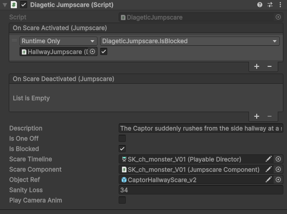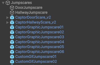 Jumpscares are also designed to be interchangable, based on the player location, enemy states, and how frequent it should be triggered, based on the current level loop.