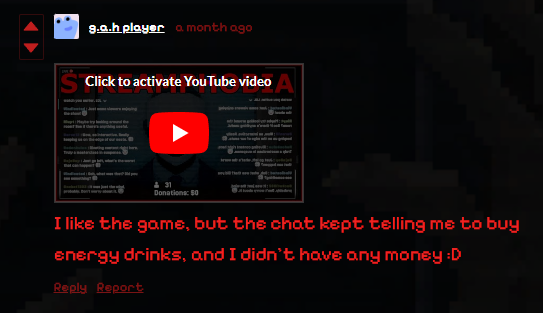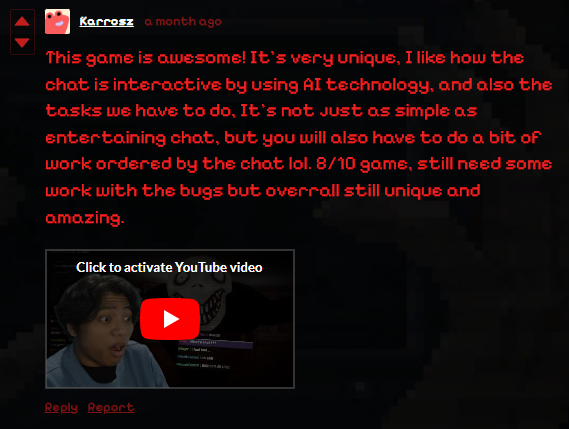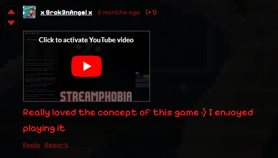 Since release on AlterStaff's itch.io page, Streamphobia has proven to be the most popular small-scaled project since Ai2U. Many players voluntarily posted playthroughs, as seen below.